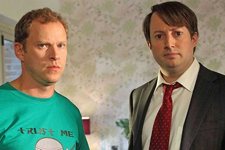 On Peep Show, roommates Mark Corrigan and Jeremy Usborne (aka Jez), played by David Mitchell and Robert Webb, are always getting themselves into wacky jams, and their solutions always seem to involve doing terrible things to other people—and sometimes each other.
